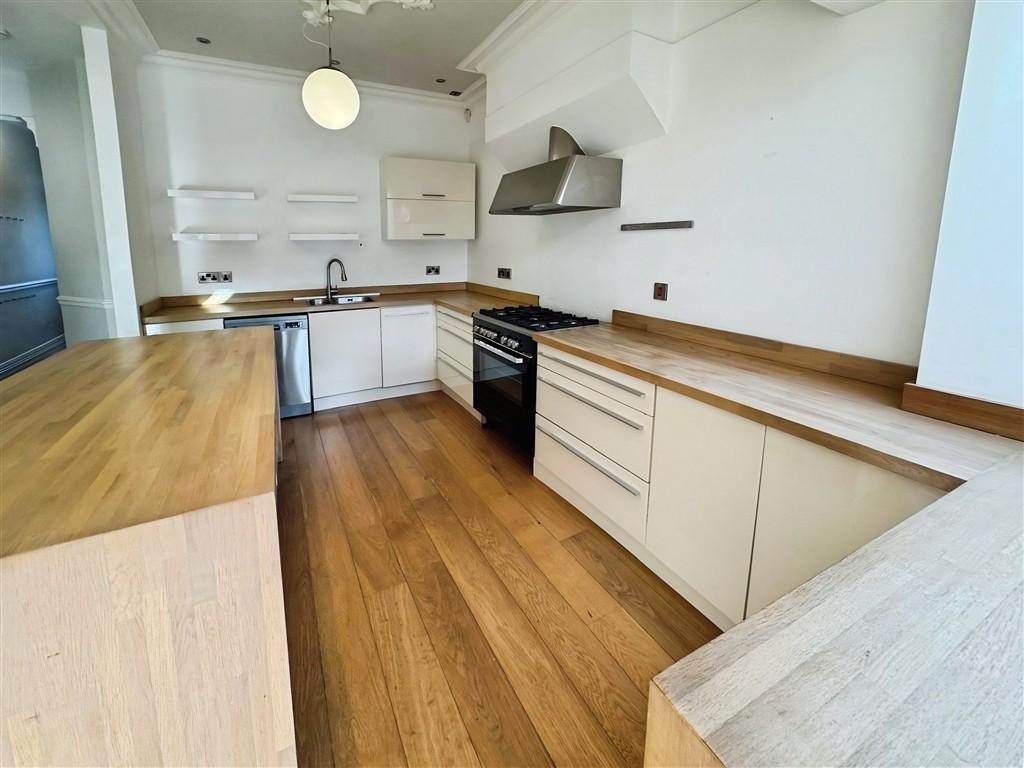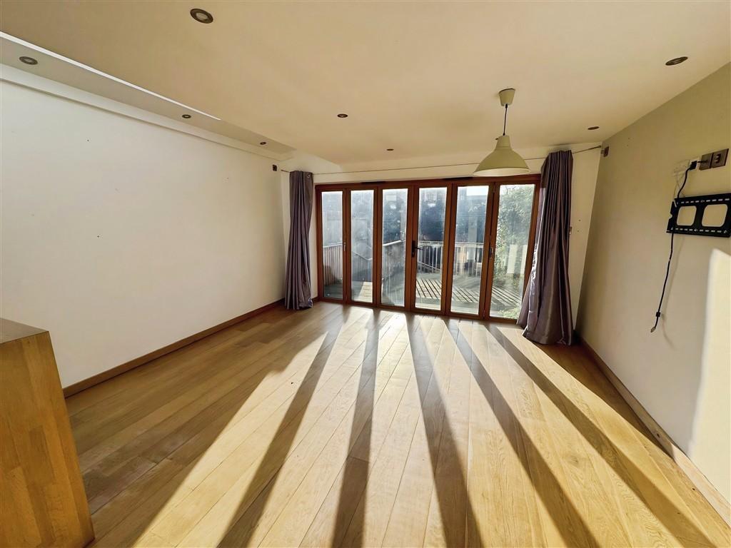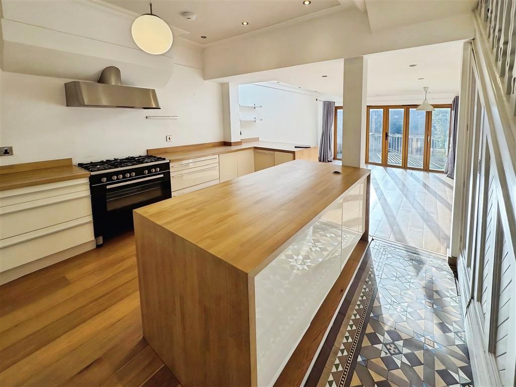 Dining kitchen - 29' 3'' x 14' 11'' (8.94m x 4.57m) A stunning room with bi-fold doors to rear decking area and southerley facing garden. Laminate flooring with heating beneath. Comprehensive range of fitted base and wall units incorporating an integral fridge and freezer. Integral dishwasher. 5 burner gas range. Inset stainless steel sink. Stainless steel extractor hood. Spot lights. Built-in cupboard with plumbing for an automatic washing machine and vent for tumble dryer. Access door to cellar.