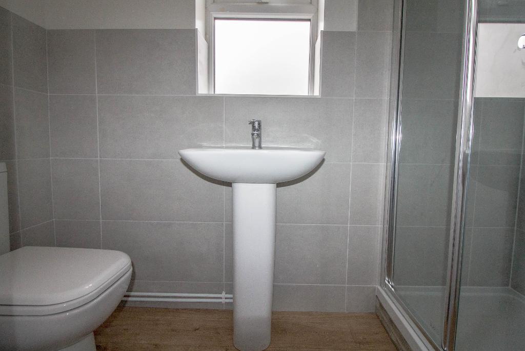 Shower Room - 3' 3'' x 7' 10'' (1m x 2.4m) Radiator. Low level W.C. Wash hand basin. Side elevation UPVC window. Mains shower cubicle.