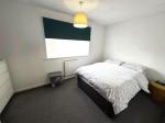 Bedroom Three - Rear elevation window, carpeted flooring, light pendant, radiator.