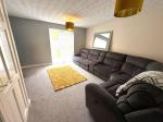 Lounge - Rear elevation French door, carpeted flooring, x2 radiator, x2 light pendant, under stairs storage cupboard, feature fire and surround.