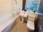Bathroom - 5' 10'' x 5' 10'' (1.8m x 1.8m) Panelled bath with pressure shower, low level WC and wash hand basin. Frosted uPVC double glazed window, vinyl flooring, wall mounted towel radiator, extractor fan and ceiling light.