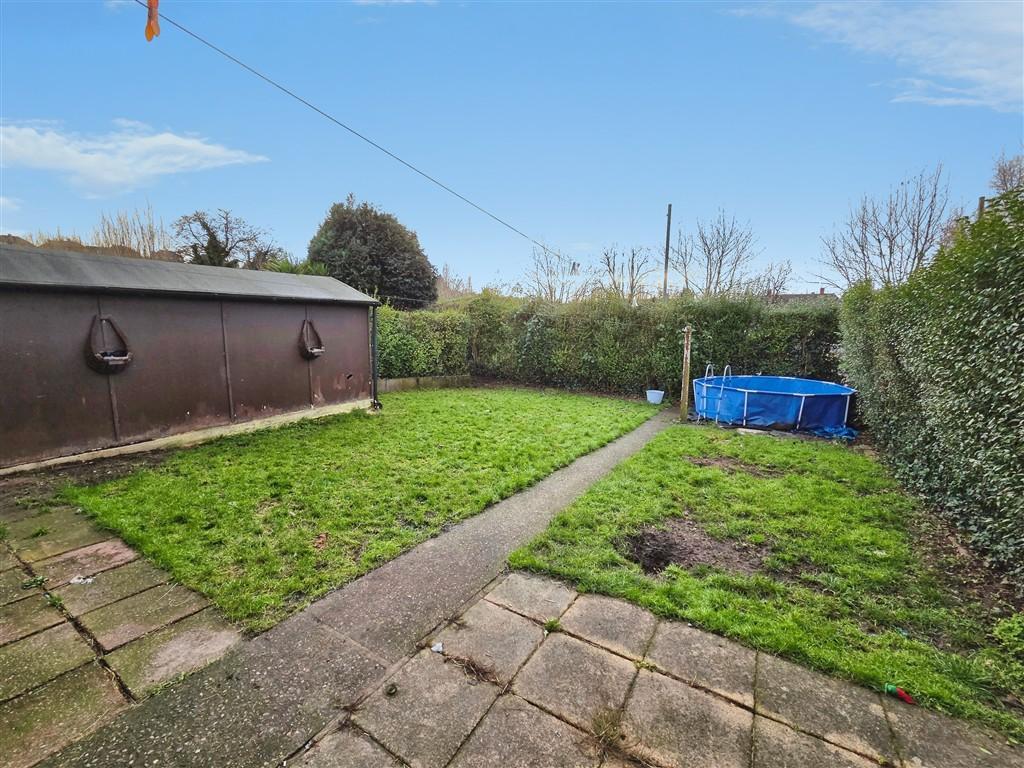 Rear: An enclosed rear garden featuring large lawns and established shrubs, offering a pleasant and private outdoor space.