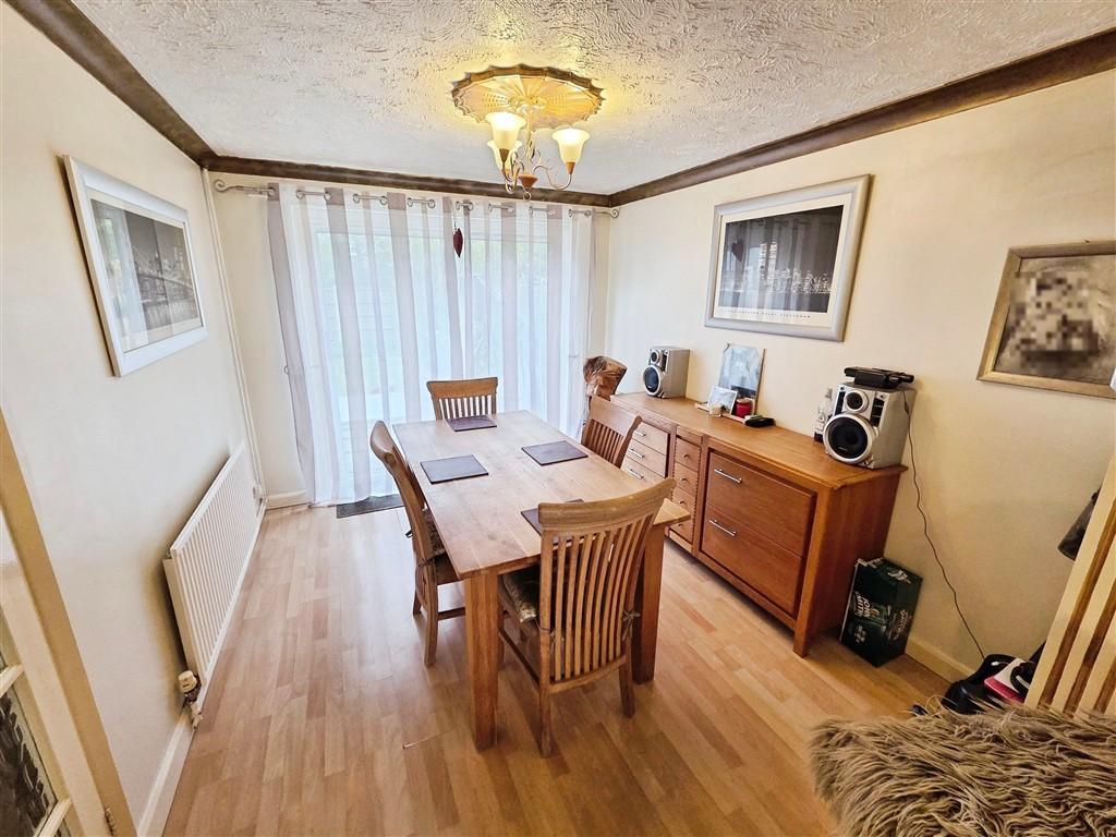 Dining Room - 10' 5'' x 8' 10'' (3.2m x 2.7m) Enjoying direct access to the garden via uPVC double glazed patio doors, this room offers laminate flooring, a wall-mounted radiator, coving to the ceiling, ceiling rose and central light.